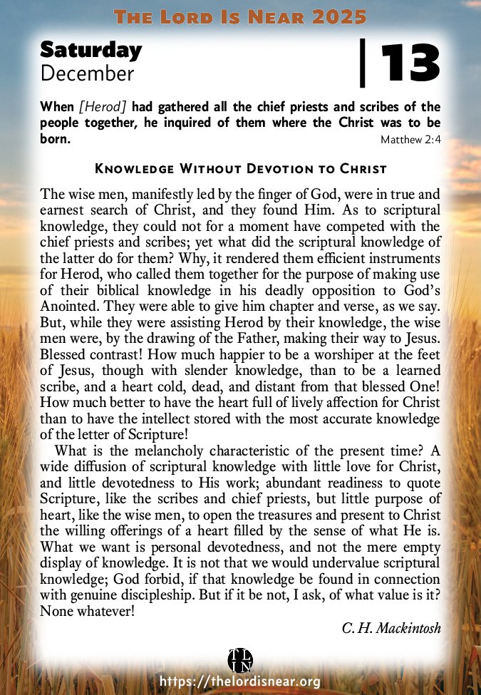 In Abraham’s case, God “spared that father’s heart a pang which He would not spare His own,” as F. W. Grant has well said. So Abraham offered up his son in figure only, and in figure received him again from the dead. Faith triumphed over an apparently insurmountable difficulty so far as nature was concerned, and Abraham bound his son upon the altar and actually took the knife to slay him, “concluding that God was able to raise him up, even from the dead” (Heb. 11:19). It was faith at its highest, triumphing over every question that the human mind could raise, and depending upon the living God, who is the God of resurrection, to work out His own wondrous purpose of grace.