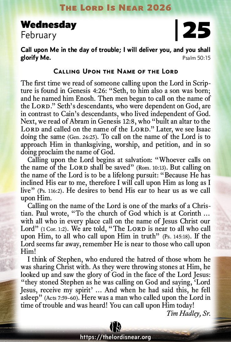 Calling on the name of the Lord is one of the marks of a Christian. Paul wrote, “To the church of God which is at Corinth … with all who in every place call on the name of Jesus Christ our Lord” (1 Cor. 1:2). We are told, “The Lord is near to all who call upon Him, to all who call upon Him in truth” (Ps. 145:18). If the Lord seems far away, remember He is near to those who call upon Him!