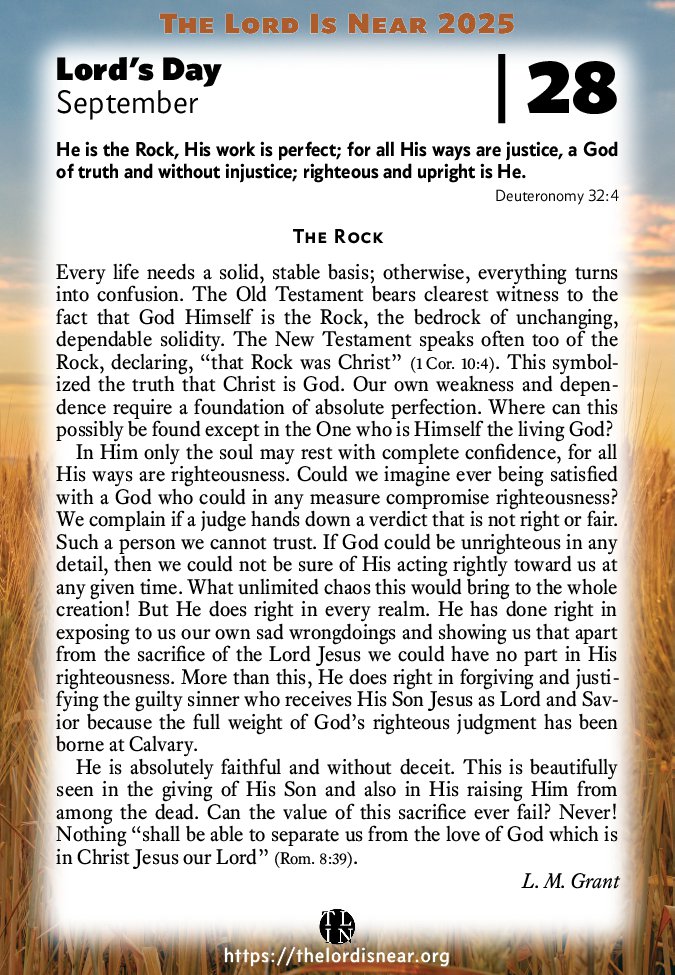 Every life needs a solid, stable basis; otherwise, everything turns into confusion. The Old Testament bears clearest witness to the fact that God Himself is the Rock, the bedrock of unchanging, dependable solidity. The New Testament speaks often too of the Rock, declaring, “that Rock was Christ” (1 Cor. 10:4). This symbolized the truth that Christ is God. Our own weakness and dependence require a foundation of absolute perfection. Where can this possibly be found except in the One who is Himself the living God?