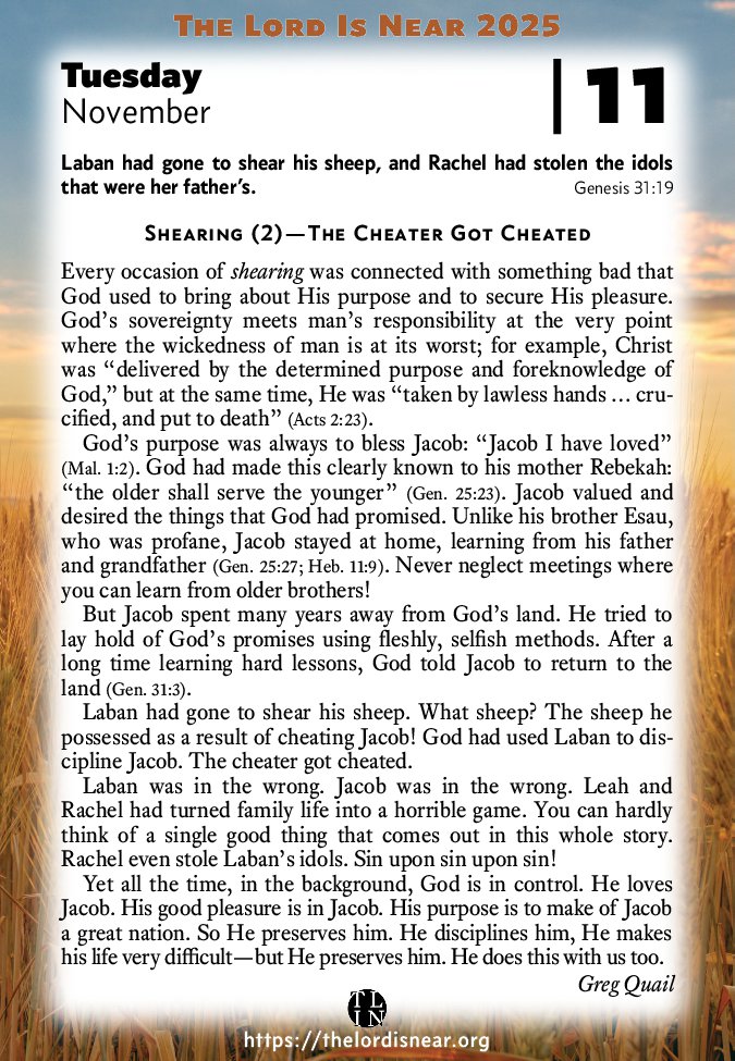 Laban had gone to shear his sheep. What sheep? The sheep he possessed as a result of cheating Jacob! God had used Laban to discipline Jacob. The cheater got cheated.